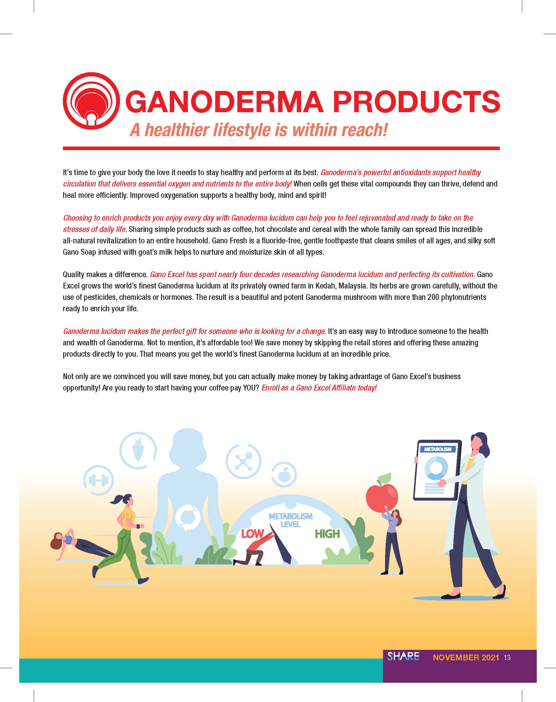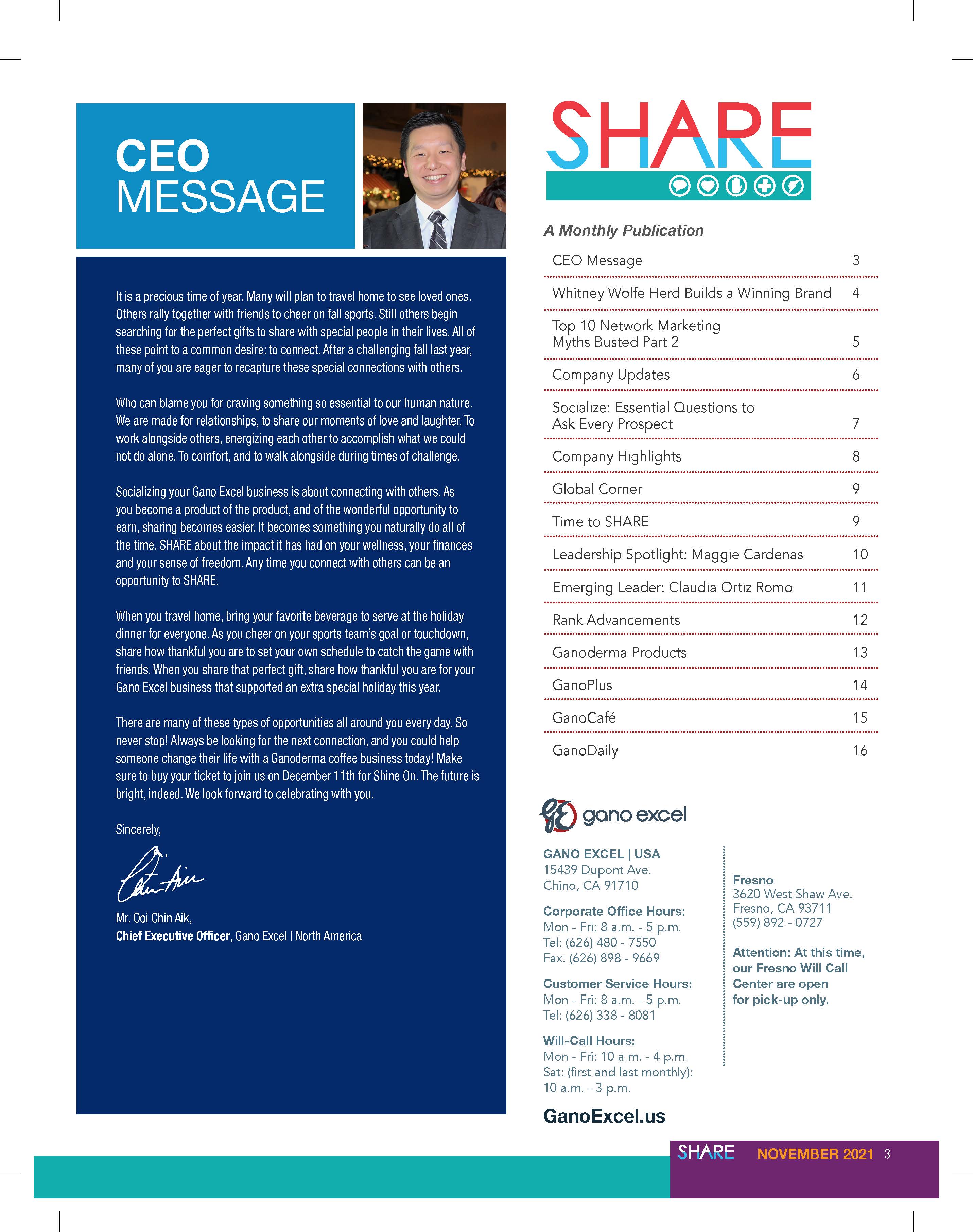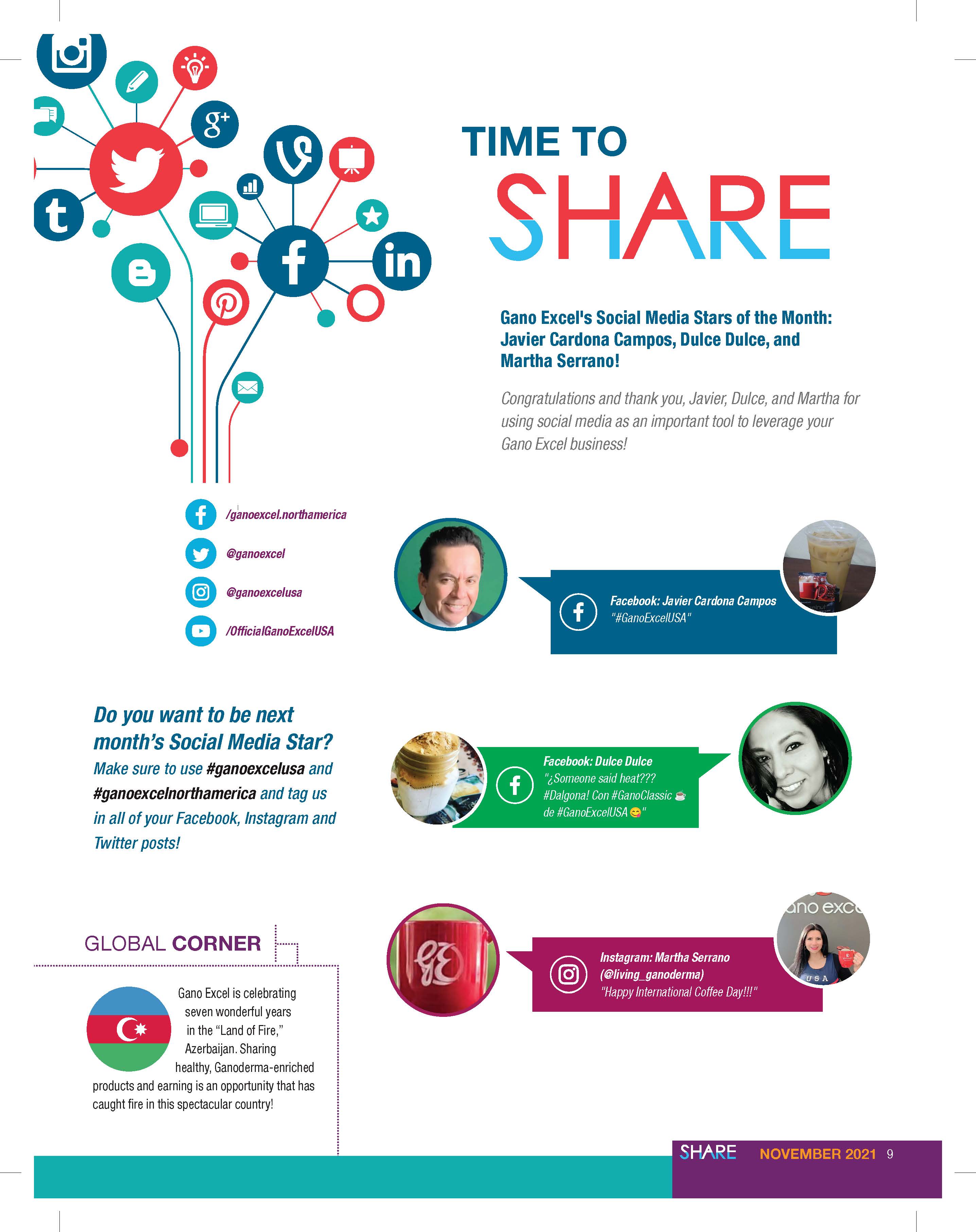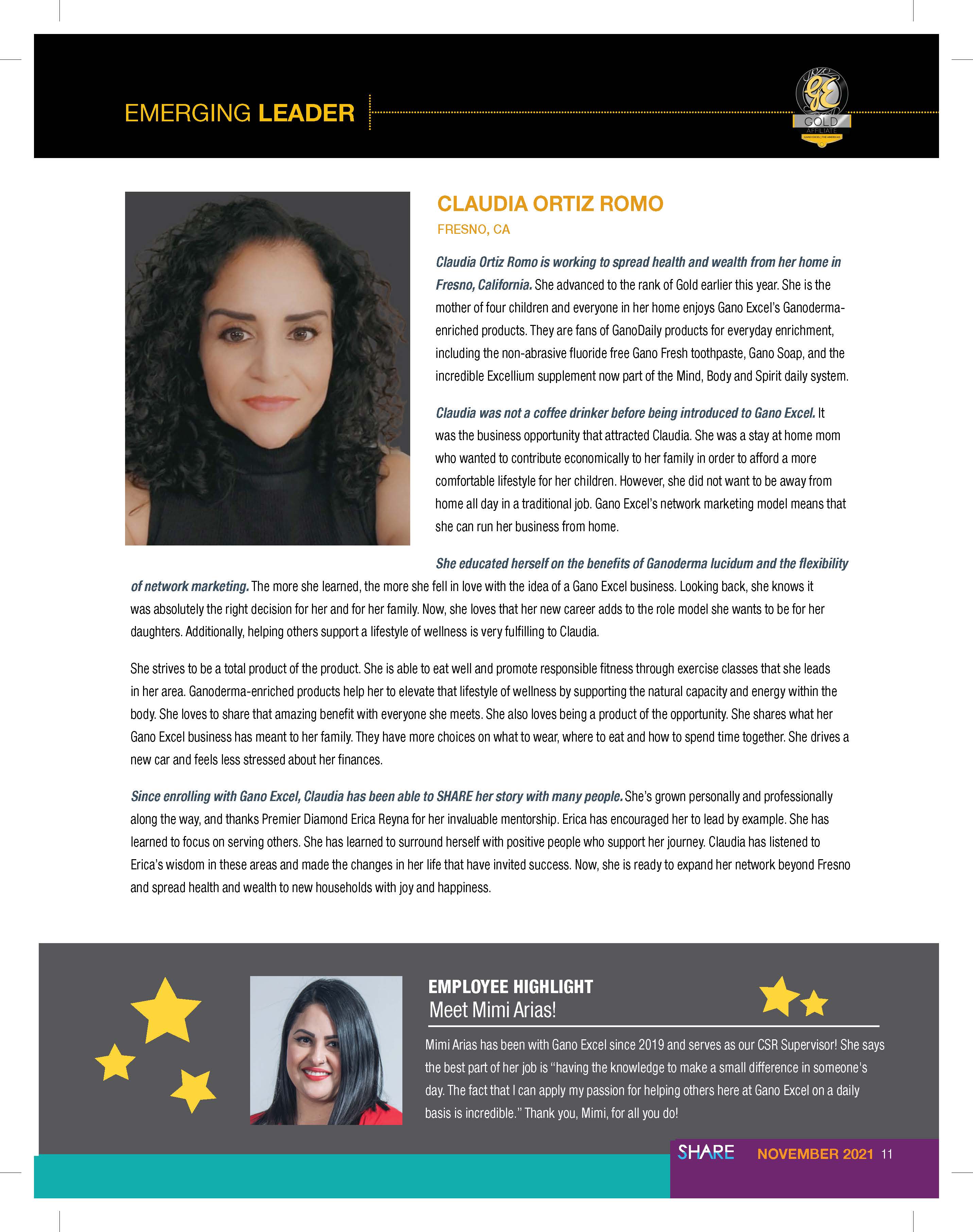 During my time with Gano Excel U.S.A., I have worked with the marketing with the SHARE Magazine. The purpose of the magazine is showcase what the company has accomplished through the months, quarters, and years. It has gain new customers since then. I have created 10 magazines.